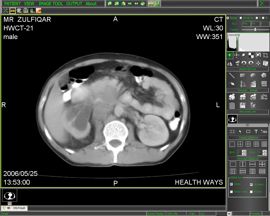 Radiologist Col. (R) Shams (Middle), Dr. Qazi (Left) and Mr.